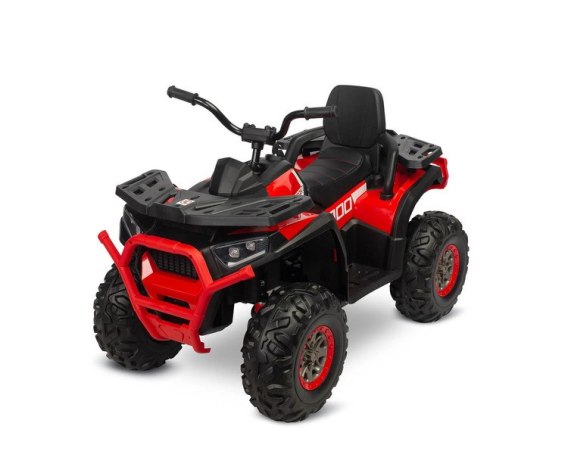 Terra od Toyz to pojazd akumulatorowy gotowy na wyprawę w teren. Quad napędzany jest 4 silnikami o mocy 45W i ma możliwość zmiany trybu napędu pomiędzy4x2 i 4x4. Obszerne siedzisko oraz przednie i tylne amortyzatory pozwalają na wygodną jazdę. Duże koła z wysokiej jakości pianki EVA, wolny start, automatyczny hamulec oraz siedzisko z oparciem wykończone ekoskórą gwarantują bezpieczną zabawę. Przednie i tylne światła LED zapewniają widoczność pojazdu i dają więcej frajdy z jazdy o zmierzchu. Dodatkowo Terra posiada panel multimedialny z bluetooth, który umili czas spędzony na quadzie. Pojazd ma możliwość zdalnego sterowania za pomocą pilota.