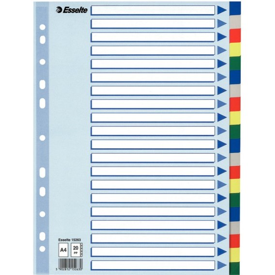 PRZEKŁADKI PP ESSELTE A4 INDEX 20 KOLORÓW