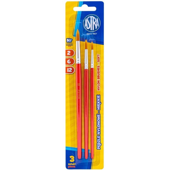 Pędzelki szkolne zestaw 3 sztuki rozmiar nr. 2,6,12 315023006 ASTRA