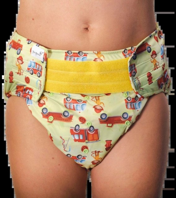 Rozmiar pieluchy jest regulowany za pomocą nap na długości oraz rzepa w pasie.