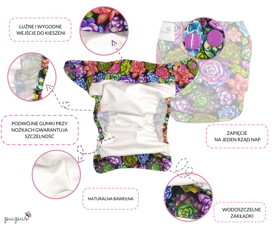 Zarówno PUL, jak i bawełna to polskie tkaniny z certyfikatami, bezpieczne dla dzieci.