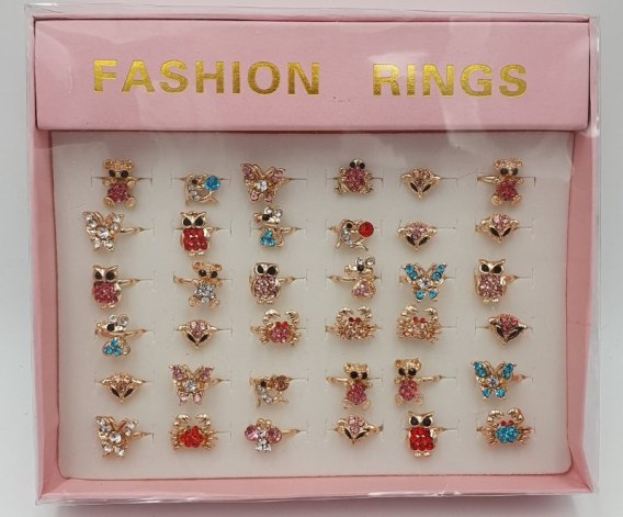 Pierścionki regulowane 36szt ZŁOTE MIX B-1604
