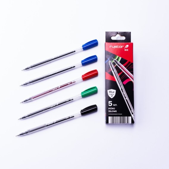 Pióro żelowe GZ-031 (5szt.) czarne,czerwone, niebieskie x2, zielone EKO etui RYSTOR 426-521EKO