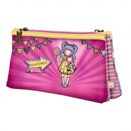 Podwójny Piórnik, Kosmetyczka, Saszetka - Gorjuss - First Prize Fantastyczna seria First Prize ozdobiona jest grafiką dziewczynki Gorjuss ze słodkim misiem, na tle w kolorze liliowym, wzbogacona akcesoriami z lunaparku: balonami, popcornem, lizakami, cukrową watą. Zawiera dwie zapinane na suwak kieszenie wyściełane delikatną podszewką. Suwak ozdobiony zawieszką w stylu antycznego mosiądzu w kształcie strzałki. Zmieszczą się w nim zarówno ołówki i długopisy, a także przybory do szycia czy inne drobiazgi. Wykonany ze szczególną dbałością. Ozdobiony logiem Santoro na gumowanej wypukłej strzałce. Wspaniały prezent do szkoły lub pracy. Wymiary: 22 cm x 12 cm x 5 cm. Zabawna kolekcja Fairground pełna plecaków, akcesoriów i artykułów papierniczych, która nawiązuje do tajemniczych przygód przeżytych w Wesołym Miasteczku pełna fajerwerków, karuzel, beczek śmiechu, huśtawek i zdobywanych nagród. Zabawne pompony, wzory pełne smakołyków czy metalowe zawieszki przeniosą nas do barwnego świata Santoro, pełnego niespodzianek jakie nas czekają w lunaparku. To kolekcja, którą będziemy cenić przez wiele lat. Podążaj za dziewczynami, bohaterkami 4 serii: Up & Away, Fireworks, Carusel i First Prize i odkrywaj ekscytującą kolekcję pełną cudownych smakołyków! 324GJ30