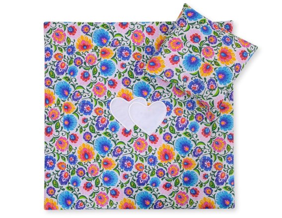 Pościel dla niemowląt z wypełnieniem kołderka i poduszka - Serduszka folk biały