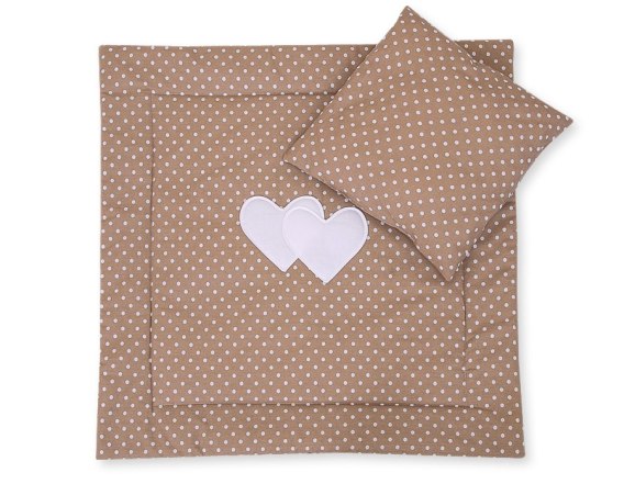 Pościel dla niemowląt z wypełnieniem kołderka i poduszka - Serduszka groszki na brązie