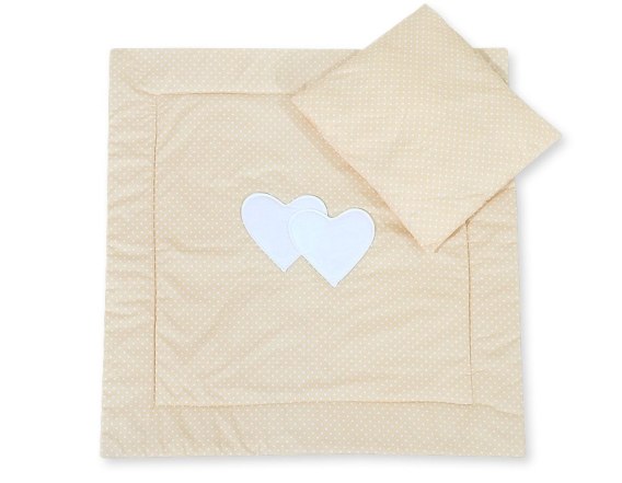 Pościel dla niemowląt z wypełnieniem kołderka i poduszka- Serduszka kropki na beżu