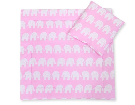 Pościel dla niemowląt z wypełnieniem kołderka i poduszka - Słonie różowe