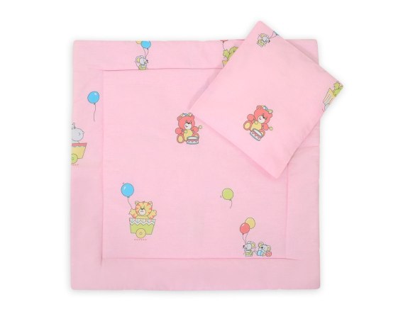 Pościel dla niemowląt z wypełnieniem kołderka i poduszka - Wagoniki na różu