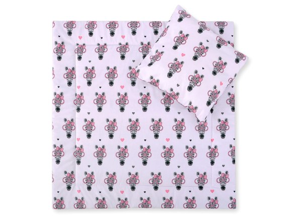 Pościel dla niemowląt z wypełnieniem kołderka i poduszka - Zebry różowe