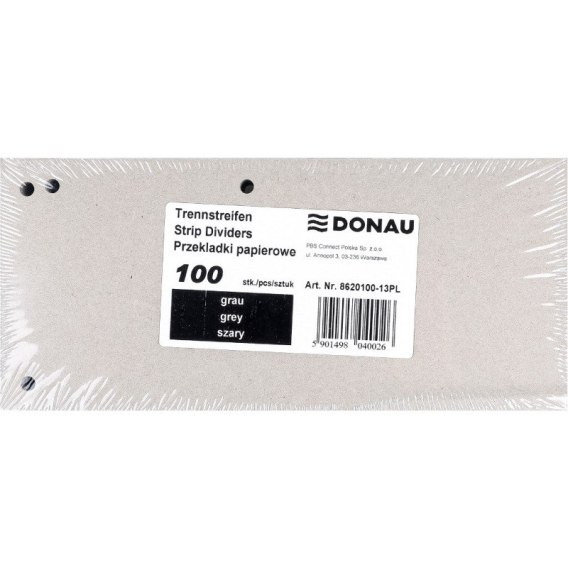 Przekładki kartonowe Donau 1/3 A4 szare (100)