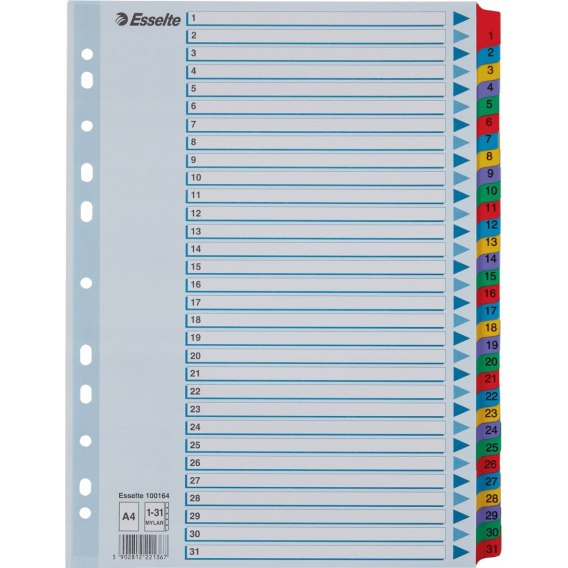 Przekładki kartonowe MYLAR A4 1-31 białe 100164 ESSELTE