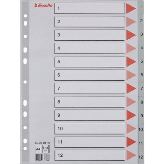 Przekładki plastikowe szare PP A4 1-12 numeryczne 100106 ESSELTE