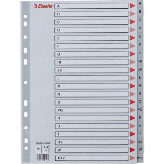 Przekładki plastikowe szare PP A4 A-Z alfabetyczne 100112 ESSELTE