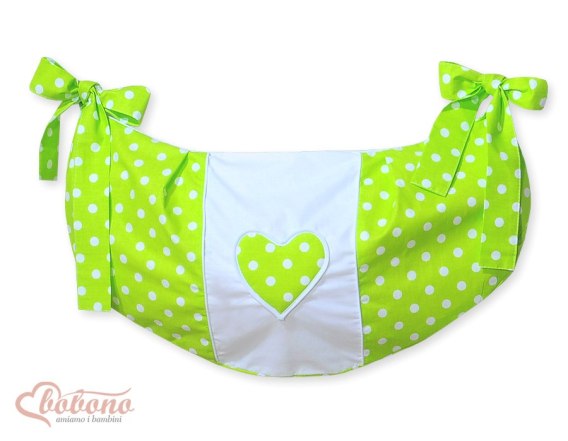 Przybornik- Torba na zabawki- Serduszka białe grochy na zielonym