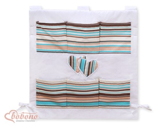 Przybornik z kieszonkami- Serduszka paseczki brązowe