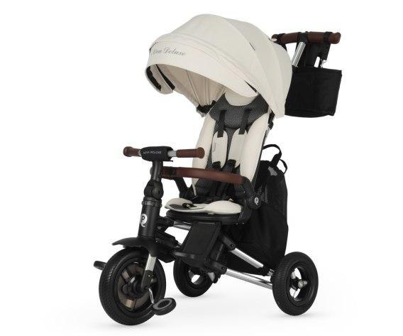 Qplay Rowerek Trójkołowy Nova Deluxe jest stabilny i bezpieczny, posiada nowoczesną aluminiową konstrukcję, wygodne wyprofilowane siedzisko '360' które umożliwi podróż przodem lub tyłem do kierunku jazdy. Do jego montażu nie potrzeba narzędzi - system szybkiego składania pozwala złożyć rowerek w kilku prostych ruchach. Rowerek został wyposażony w barierkę zabezpieczającą dziecko przed wypadnięciem, pięciopunktowe pasy bezpieczeństwa oraz podnóżki. Po zdemontowaniu rączki sterowania, barierek, budki i pokrowca na siedzisko Qplay Rowerek Trójkołowy Nova Deluxe będzie służył jako klasyczna trójkołówka dla samodzielnego małego rowerzysty. Rowerek ten z pewnością zadowoli najbardziej wymagające gusty, firma QPLAY zastosowała najnowsze trendy w kolorystyce i stworzyła trójkołowca z ramą z efektownym skórzanym wykończeniem oraz dla podkreślenia design zastosowane zostały wszywki z logo i nazwą na budce oraz torbie. Wszystko dla zwiększenia jego atrakcyjności. Gumowe bezdętkowe kółka zapewniają komfort jazdy. Funkcje wolnego koła oraz wolnej kierownicy dają rodzicowi kontrolę aby spokojnie podążać wyznaczoną trasą. Skórzane wykończenia. Ręcznie szyty pałąk oraz uchwyt do prowadzenia pokryte miękką ekoskórą zapewniają wygodę i elegancki wygląd. Wykładany z daszka budki na barierki specjalny dodatkowy materiał chroniący/ zasłaniający prze promieniami UV. Oddychająca poduszka o anatomicznym kształcie. Zaprojektowana z myślą o wygodzie i lepszej cyrkulacji powietrza dziecka. Łatwa do złożenia konstrukcja modelu Qplay Nova Deluxe sprawia, że rowerek jest wyjątkowo wygodny w przenoszeniu. Wyposażona jest również w torbę na zakupy, torbę na pieluchy oraz uchwyt na kubek z przegrodą na telefon - idealne miejsce do przechowywania butelek z wodą, zabawek, przekąsek i chusteczek!