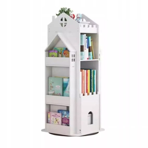 REGAŁ NA KSIĄŻKI OBROTOWY PÓŁKA DOMEK ORGANIZER POKÓJ DZIECIĘCY BIAŁY WF
