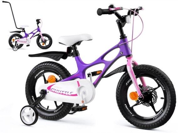 Rowerek renomowanej firmy Royal Baby Space Shuttle 14" to pierwszy rower wysokiej jakości dla amatora dwóch kółek, idealnie nadaje się dla prawdziwego podwórkowego kierowcy. Magnezowa, lekka rama o zakrzywionej powierzchni i gładkich liniach oraz regulowana kierownica profesjonalnie wyprofilowana z bezpiecznymi gumowymi manetkami, z zamkniętą osłoną regulacji, dzwonkiem i światełkiem odblaskowym. Komfortowe siodełko, 14 calowe koła z wysokiej jakości oponą, podwójnie bezpieczny układ hamulcowy z podwójnymi hamulcami tarczowymi zapewnią komfortową i stabilną jazdę. Boczne kółka + dopinany pałąk zapewniające na początku utrzymanie równowagi, aby dziecko szybciej nauczyło się samodzielnej jazdy. Pełna osłona łańcucha chroniąca przed zranieniem i pobrudzeniem. Dobrej jakości komponenty nie sprawiające problemów w użytkowaniu. Kolorystyka i grafika znajdująca uznanie w oczach właściciela i kolegów z podwórka. Rowerek ten jest świetnie dopracowany, odległości między kierownicą, siodełkiem a pedałami są proporcjonalnie zachowane co zapewnia płynną i wygodną jazdę.