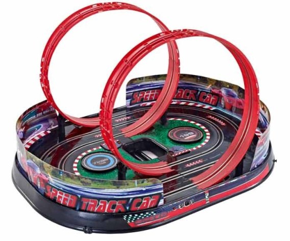 Niesamowity tor wyścigowy Speed Track z dwoma pętlami dla dzieci od 6-go roku życia. Zabawka posiada efekty dźwiękowe (odgłos jazdy samochodu wyścigowego) oraz efekty świetlne (przednie światła samochodu, prędkościomierze na torze). Zestaw nie wymaga użycia baterii, sterowana jest manualnie, wystarczy obracać korbką w kontrolerze by wprawić w ruch pojazd. Im szybciej kręcimy tym szybciej nasz pojazd będzie sunął po torze. Istnieje możliwość przekształcenia toru w wersję R/C po zakupie pilotów i zasilacza.