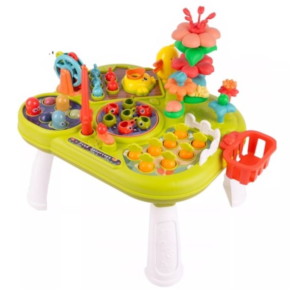 ✅ 4 aktywności w 1: łowienie rybek, wbijanie robaczków, sadzenie marchewek i karmienie zwierzątek