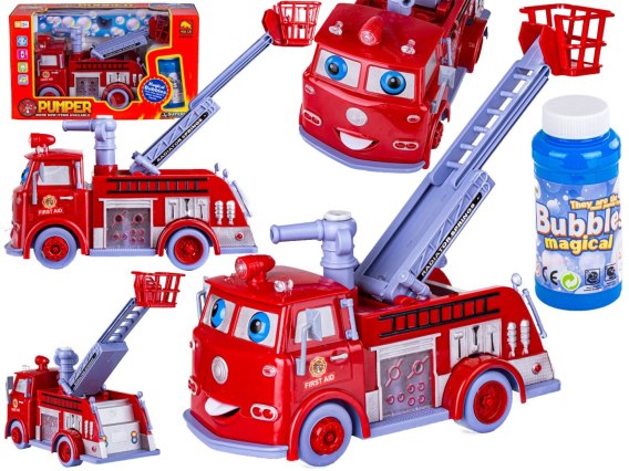 Podczas jazdy samochód puszcza piękne, duże i mieniące się barwami tęczy bańki mydlane! Wystarczy wyjąć zatyczkę, nalać płynu za pomocą lejka i gotowe.