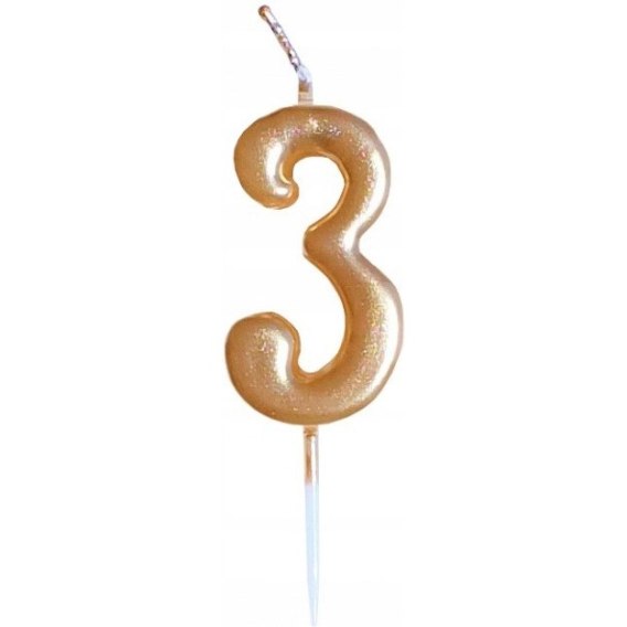 Świeczka urodzinowa metaliczna złota Cyferka 3 SH-719-3 GO PARTY