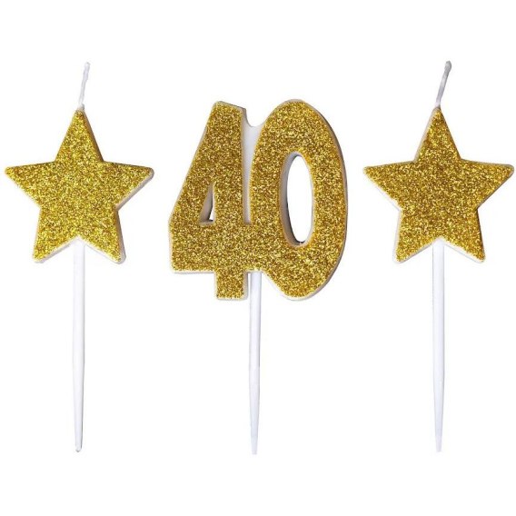 Świeczki urodzinowe złoty brokat 40 dwie gwiazdki SH-588-40 GO PARTY