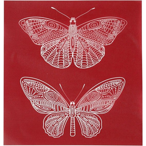 Samoprzylepny szablon zainspirowany techniką sitodruku, ale gotowy do użycia bez specjalistycznych narzędzi. Do szablonu jest dołączona plastikowa rakla.