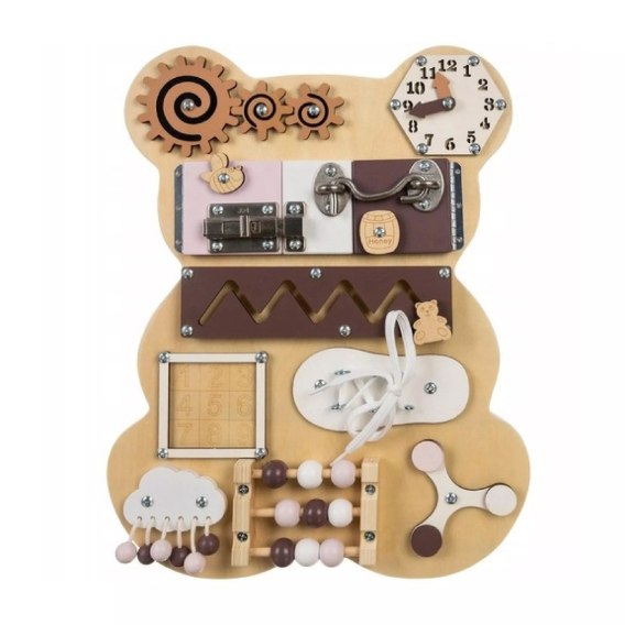 Tablica manipulacyjna Miś doskonale sprawdzi się w domu, przedszkolu, gabinetach terapeutycznych i wszędzie tam, gdzie zależy Ci na wspieraniu naturalnego rozwoju dziecka. To również świetny pomysł na prezent, który łączy zabawę z nauką.