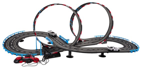 |   | Poszczególne elementy konstrukcyjne pozwolą zbudować tor z ostrymi zakrętami, spiralami i odcinkami prostymi, a wszystko po to, aby maksymalnie uatrakcyjnić zabawę i dodać całej zabawie emocji. W zestawie znajdują się dwa pojazdy. Zestaw idealny dla dzieci powyżej 6-go roku życia. Zabawka zasilana jest bateriami typu 6 x AA 1,5 V (baterii brak w zestawie). Funkcje zestawu - odpowiedni dla dzieci powyżej 6-go roku życia, - wykonany ze świetlnej jakości materiałów, - tor zawiera odcinki proste, pętle 360 stopni, zakręty, spirale, - skala odwzorowania 1:43, - tor może być podpięty do zasilania lub na baterie, - 2 prędkości. |