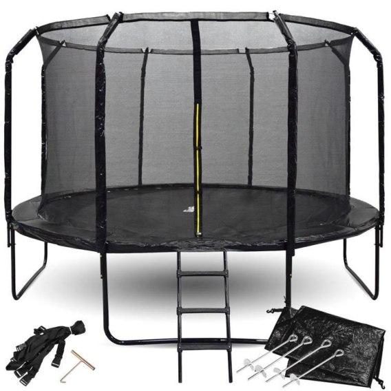 Trampolina ogrodowa SkyFlyer Black 366 cm z siatką i profilowanymi słupkami to propozycja dla wszystkich lubiących i ceniących sobie dobry ruch. Nie od dziś wiadomo, że ruch to zdrowie, endorfiny, pozytywne nastawienie, wszystko co dobre. Dlatego taka trampolina we własnym ogrodzie to fantastyczny motywator do wprawiania własnego ciała w ruch! Nie ma na co czekać właśnie ta trampolina pozwoli Tobie i Twoim dzieciom być w świetnej kondycji i formie.