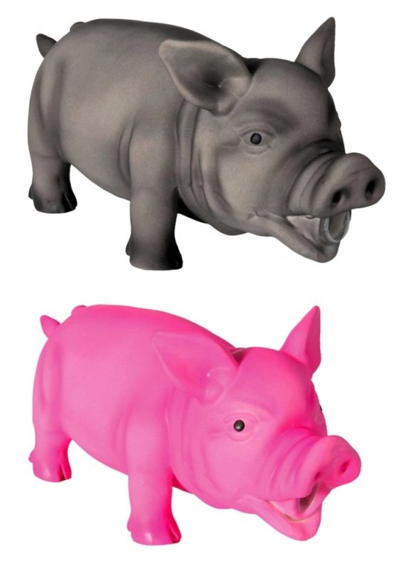 Zabawka świnka z lateksu dla psa. Dużym plusem jest to, że zabawka posiada naturalny głos bardzo zbliżony do rzeczywistych odgłosów świń. Zabawka przeznaczona dla wszystkich psów. Idealny produkt na dla psów i właścicieli lubiących zabawy. Wykonany z gładkiej i miękkiej gumy. Masuje dziąsła jednocześnie oczyszczając zęby.