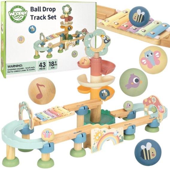 Przepiękny drewniany tor kulkowy od Woopie Green to wyjątkowa zabawka, która łączy w sobie elementy ruchu, dźwięku i nauki poprzez zabawę. To idealny zestaw dla najmłodszych odkrywców świata, którzy z radością obserwują, jak kolorowe kulki toczą się po torze, wprawiając w ruch różne elementy i wydając przyjemne dźwięki. Całość utrzymana jest w pastelowej, przyjaznej kolorystyce, która przyciąga wzrok i wprowadza do zabawy ciepłą, spokojną atmosferę. Zabawka zachwyca nie tylko wyglądem, ale przede wszystkim funkcjonalnością i jakością wykonania - została zaprojektowana z myślą o rozwoju dziecka już od najmłodszych lat. Dzięki różnorodnym elementom - takim jak spiralne zjeżdżalnie, mostki, tory oraz cymbałki - dziecko może obserwować zmieniające się ruchy piłeczek, słuchać wydawanych przez nie dźwięków oraz eksperymentować z prędkością i kierunkiem ich toczenia. To doskonała forma zabawy, która jednocześnie rozwija i bawi. Zabawka sprawdzi się w domu, przedszkolu lub jako efektowny prezent dla dziecka w wieku niemowlęcym i wczesnodziecięcym.