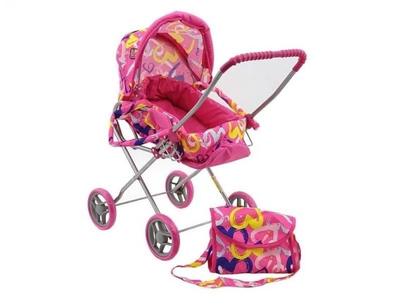 Wózek głęboki dla lalek z koszem i daszkiem 2w1