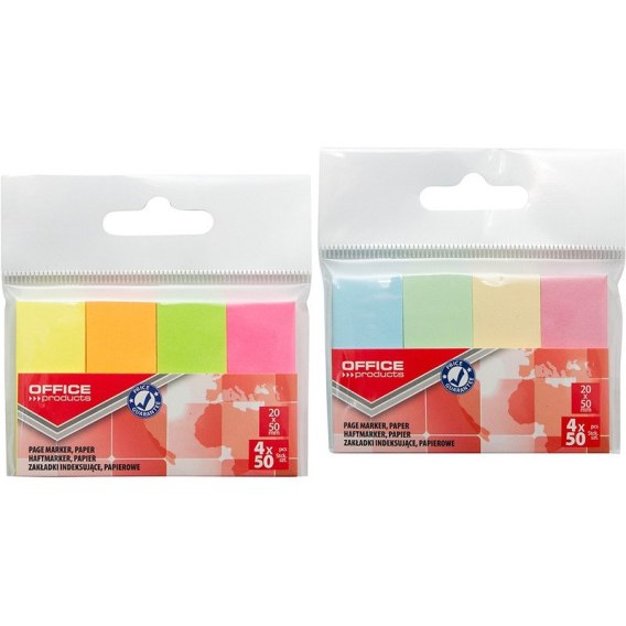 ZAKŁADKI INDEKSUJĽCE OFFICE PRODUCTS, PAPIER, 20X50MM, 4X50 KART. MIX KOLORÓW PASTEL