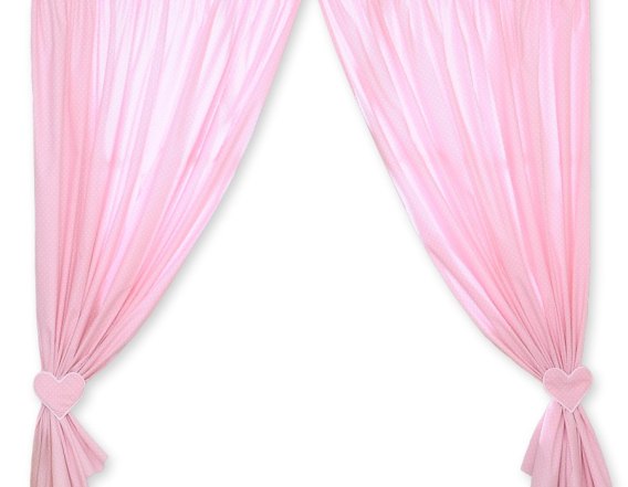 Piękny komplet zasłonek z serduszkami i szarfami do związania po bokach. Wykonane z tkaniny bawełnianej. Góra zasłonek obszyta taśmą do łatwego i równego zmarszczenia. Idealnie uzupełniają pokój dziecięcy tworząc harmonijną całość z pościelą na łóżeczku.