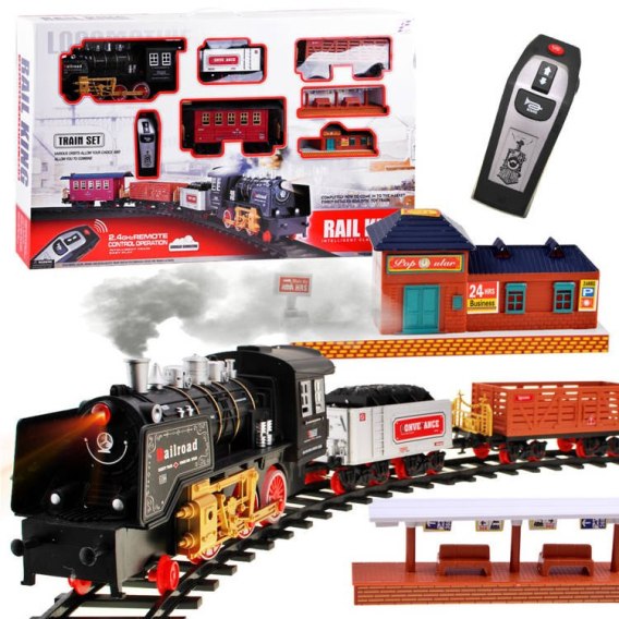 Nowa, piękna, starannie dopracowana kolejka z wagonami sterowana na pilota zachwyci każdego małego maszynistę.