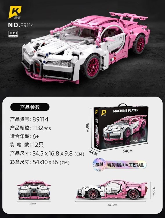 Zestaw Klocków Auto Sportowe Różowe 1132el.