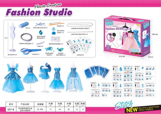 Zestaw Małej Projektantki, Niebieskie Materiały + Akcesoria
