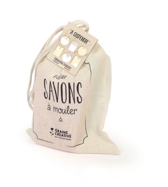 Zestaw do robienia mydełek, zapakowany w bawełniany worek.