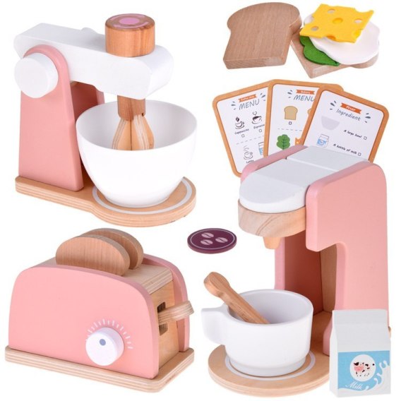 Zestaw drewniany AGD - smak zabawy jak w prawdziwej kuchni - zestaw AGD - toster, ekspres i mikser!