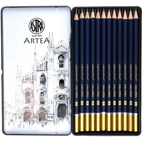 Zestaw ołówków od 8B do 3H 12 sztuk w metalowym pudełku 206120013 ASTRA